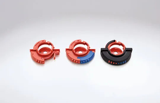 Unsere Bedienräder aus drei Komponenten sorgen dafür, dass Sie nicht ins Schwitzen kommen. Mehrkomponententeile mit Hart-Weich Verbindungen sind alltäglicher Begleiter in unserer Fertigung.