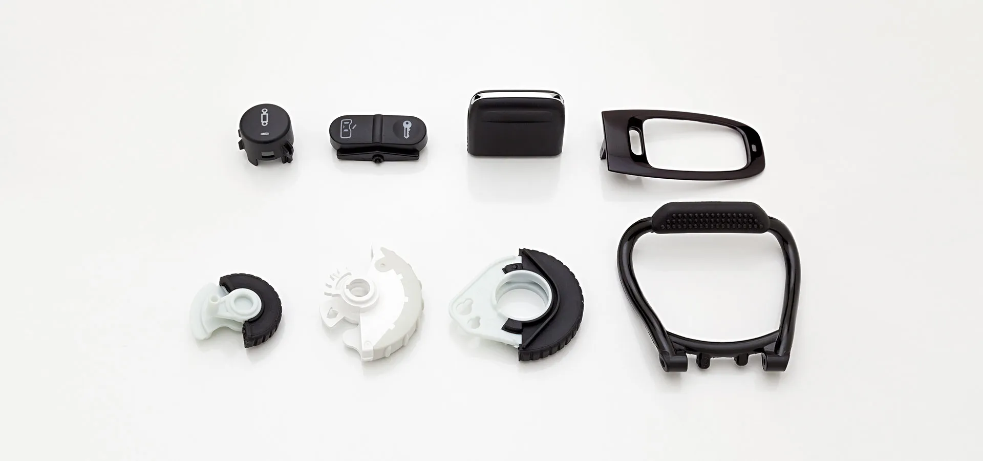 Exklusive Mehrkomponenten-Spritzteile mit höchsten Oberflächenanforderungen sind ein bedeutender Teil unseres Produktportfolios. Edle Oberflächen in Hochglanz in Verbindung mit Symbolen und Lichtsegmenten realisieren wir ohne nachgelagerte Veredelungsverfahren in einem Prozess.