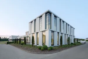 Bei der Planung und dem Bau des 2022 neu eröffneten Verwaltungs- und Entwicklungsgebäudes stand nicht nur ein modernes, sondern vor allem ein energetisch hocheffizientes Gebäudekonzept an erster Stelle. Hierfür wurde ein neues Wärmerück-gewinnungskonzept im Unternehmen implementiert. Dieses ermöglicht, dass sowohl der Neubau als auch das Bestandgebäude zu 100% mit bislang ungenützter Abwärme beheizt werden. Hierfür liefern 3 modernste Druckluftschrauben Sommer wie Winter konstant 80°C Wärme. Im Sommer wird die nicht benötigte Abwärme mit einer Adsorptionskältemaschine unter minimalem Energieeinsatz in Kälte umgewandelt. Somit kann auf stromintensive Kältemaschinen zur Gebäudekühlung verzichtet werden.